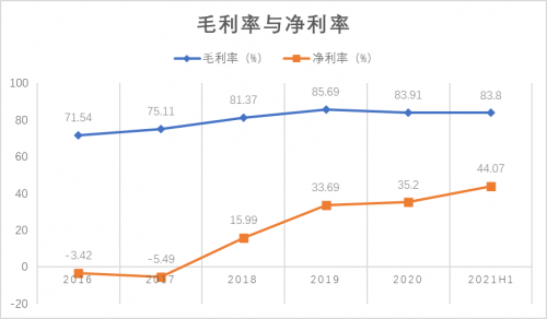 再看公司的盈利情况,公司的毛利率近年来保持在较高的水平,一是因为公司前期主要产品为中端人工晶状体,在2016年、2018年公司研发的高端人工晶状体以及2019年角膜塑形器获批陆续进入市场,销售量也快速增长,使得其盈利能力得到了提升,二是因为公司规模不断扩大,规模效应使其毛利率水平整体上有一定的提升。同时,得益于公司费用管理能力的提升,其净利率也得到了显著提升。