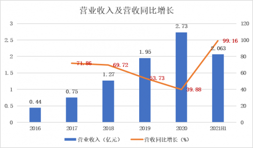 近年来公司营业收入快速增长,由下图我们可以看出,公司近年来营业收入同比增长一直保持在较高的水平,尤其是在2020年疫情的影响下,公司营业收入仍能有40%的增长,这主要是因为公司的主要产品在市场上的认可度不断提升,并且公司不断推出新规格型号产品,使得其销量保持着稳定增长。