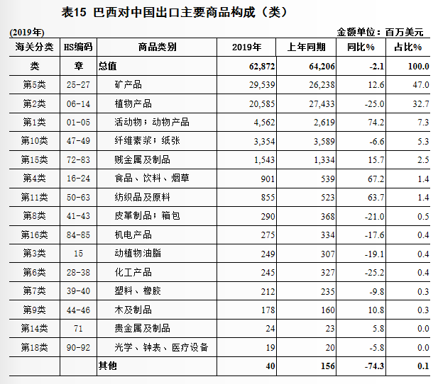 巴西主要向中国出口什么产品?