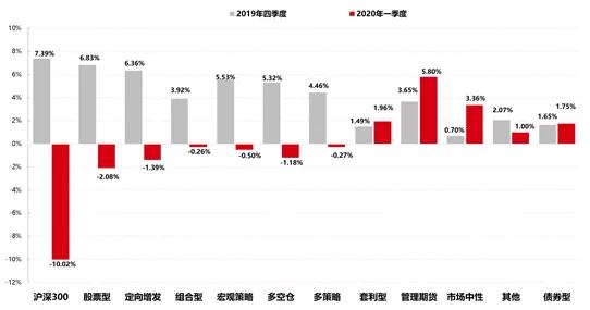 从第一季度主要私募策略的表现来看,私募基金经理在危机下的确表现出了更强的生存能力。在沪深300指数下跌超过10%的情况下,私募股权投资的整体损失仅为-2.08%。从正态分布来看,一季度业绩主要分布在豪麦基金研究中心统计的-4.08%至3.46%的股票私募中。