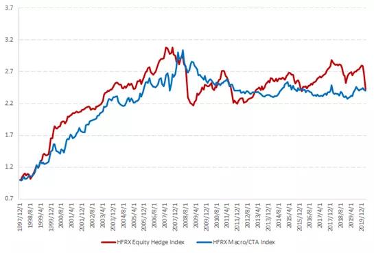 从长期来看,CTA策略的波动相对较小。在过去的40年里,海外股票对冲基金和海外CTA都经历了97次金融海啸和2008年的经济危机。在此期间,CTA策略相对于股票对冲基金表现良好。
