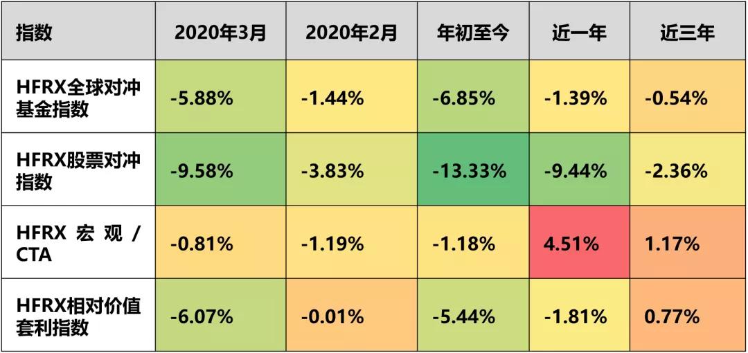 从海外来看,CTA基金也成为表现最好的产品类别。大多数全球对冲基金在3月份录得负回报。总体而言,根据HFR的统计,高频交易全球对冲基金指数下跌了5.88%。