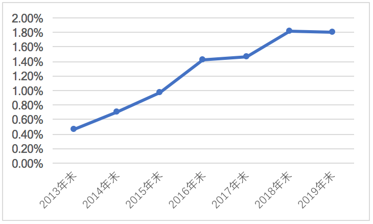截至2019年底,本行不良贷款率为1.80%,较去年底的1.82%下降0.02个百分点。此前,2013年末至2018年末,威海银行不良贷款率分别为0.46%、0.70%、0.97%、1.42%、1.47%和1.82%。这表明威海银行不良贷款率连续五年上升。