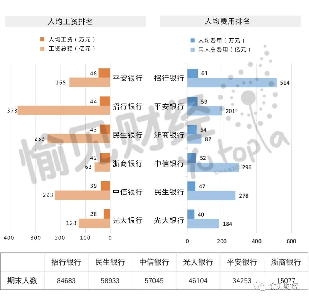 最后,我们试图将习惯性的“工资”与报表中的其他各种雇佣费用分开,并在文章的开头获得了一个全新的六家股份制银行的比较列表。供你参考。