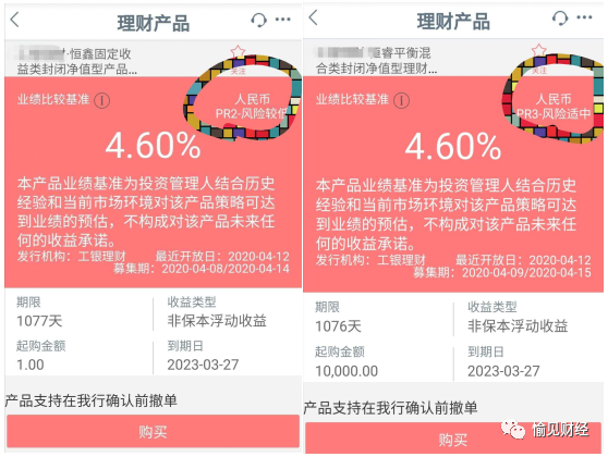 在仔细阅读了这两种金融产品的说明后,“发现金融”发现前者的固定收益产品在浮动中规定了以下句子