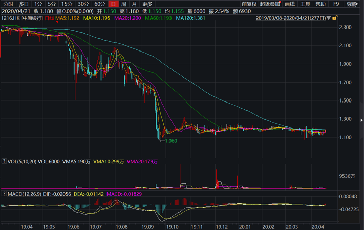 4月18日,银鸽投资(600069。上海)宣布最近收到了上海证券交易所的《关于对河南银鸽实业投资股份有限公司涉及诉讼、银行账户冻结等事项的问询函》,并公布了询价信的内容。内容之一是公司持有的中原银行股份6704.96万股被冻结。如果有拍卖,不清楚是否能获得好的价格。中原银行在香港股市的交易非常糟糕,截至4月20日的收盘价仅为每股1.18港元,其最近披露的2019年年报也没有给投资者带来多少好消息。