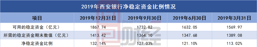从2019年第一季度末至第四季度末,Xi安银行的净稳定资本比率分别为113.02%、121.1%、127.03%和132.14%,并呈现逐月上升的趋势。
