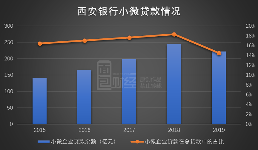与2018年相比,虽然2019年Xi安银行小微企业贷款客户数量增长了65.09%,但年末贷款余额和当年新增贷款分别下降了8.76%和4.66%。小微企业贷款占贷款总额的比重从18.32%下降到14.49%。