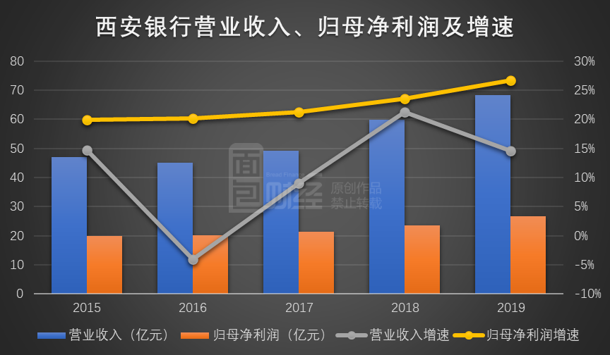 Xi安银行披露的2019年度报告(600928。上海)显示,归属于母公司的营业收入和净利润分别同比增长14.55%和13.27%。与此同时,银行的资产质量和抵御风险的能力也有所提高。